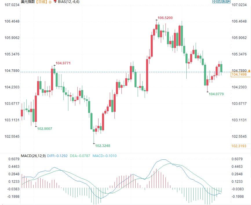 美元指数在连续四个交易日的强劲涨幅后,周末出现小幅回落,最终报收于104.70,跌幅0.33%。这一波动背后,是美国经济数据的持续弹性与市场对美联储降息预期的消退共同作用的结果。尽管如此,"美国经济的积极迹象和美联储官员的鹰派评论,以及好于预期的PMI初值,都为美元提供了坚实的支撑",XM.com首席投资分析师Raffi Boyadjian指出。