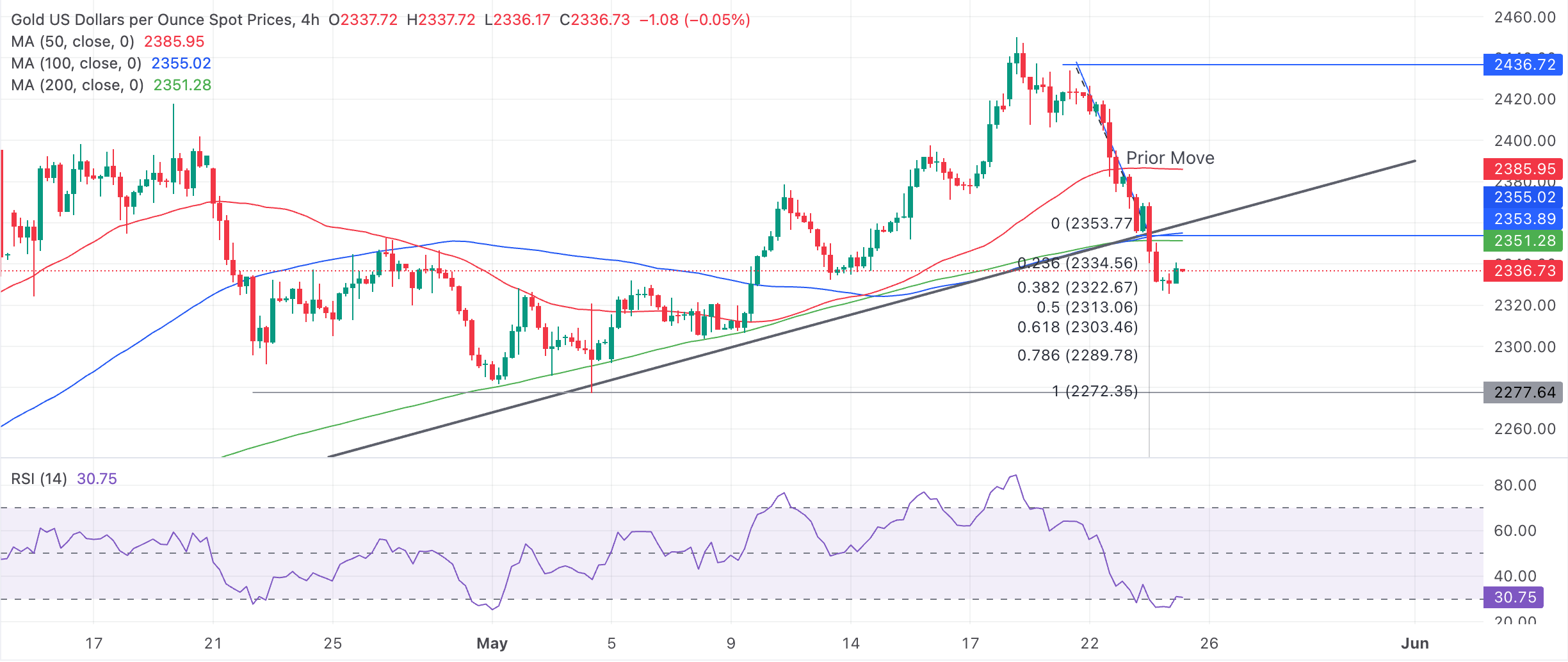 James Stanley,嘉盛高级市场策略师,尽管本周出现了强劲回调,但他仍然看好黄金。Stanley指出,现货和期货在2300美元/盎司附近仍有相当多的支撑结构。他认为,如果空头下周能够突破这一支撑,可能会出现更大幅度的逆转,但目前看来,本周更像是看涨趋势的回调。Stanley的观点强调了即使在市场回调时,黄金的支撑结构依然强劲,这可能为投资者提供了一个看涨的信号。