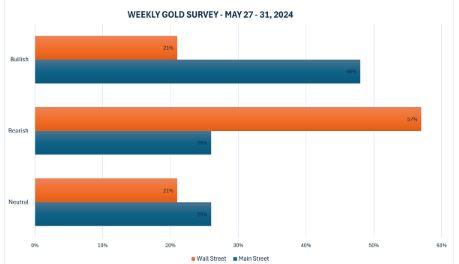 汇通财经APP讯——在Kitco News黄金调查中,华尔街分析师和散户投资者对黄金价格的未来走势产生了显著分歧。华尔街的14位分析师中,有21%预计金价将上涨,57%预测金价将下跌,而21%认为金价将横盘整理。与此同时,在线调查中的195名散户投资者则显示出更多的看涨情绪,其中48%预计金价将上涨,26%预测金价将走低,21%预计金价将维持区间波动。