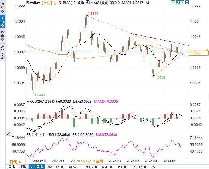 美元指数保持稳定,位于104.80附近。投资者的目光聚焦于即将公布的美国PCE通胀数据,这一数据预计将成为市场波动的催化剂。美国4月个人消费支出(PCE)物价指数,作为美联储密切关注的通胀指标,其核心PCE物价指数的同比变化,对政策制定者具有重大影响。