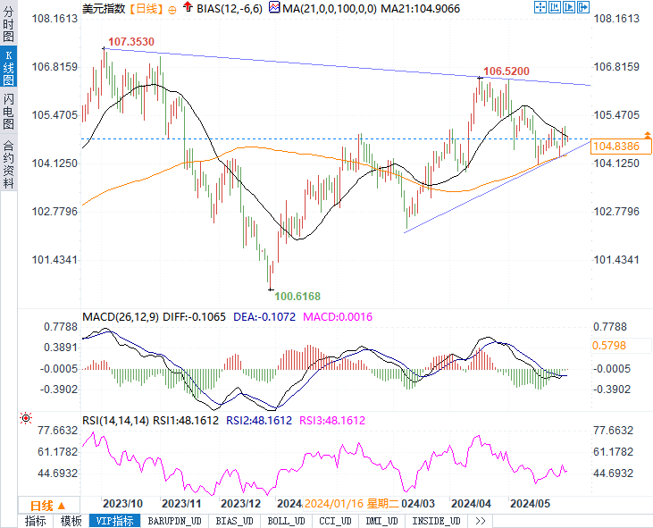 美元指数美元指数周四从105.18的高点回落。总体而言,只要104.50-104附近的支撑位守住,仍然认为