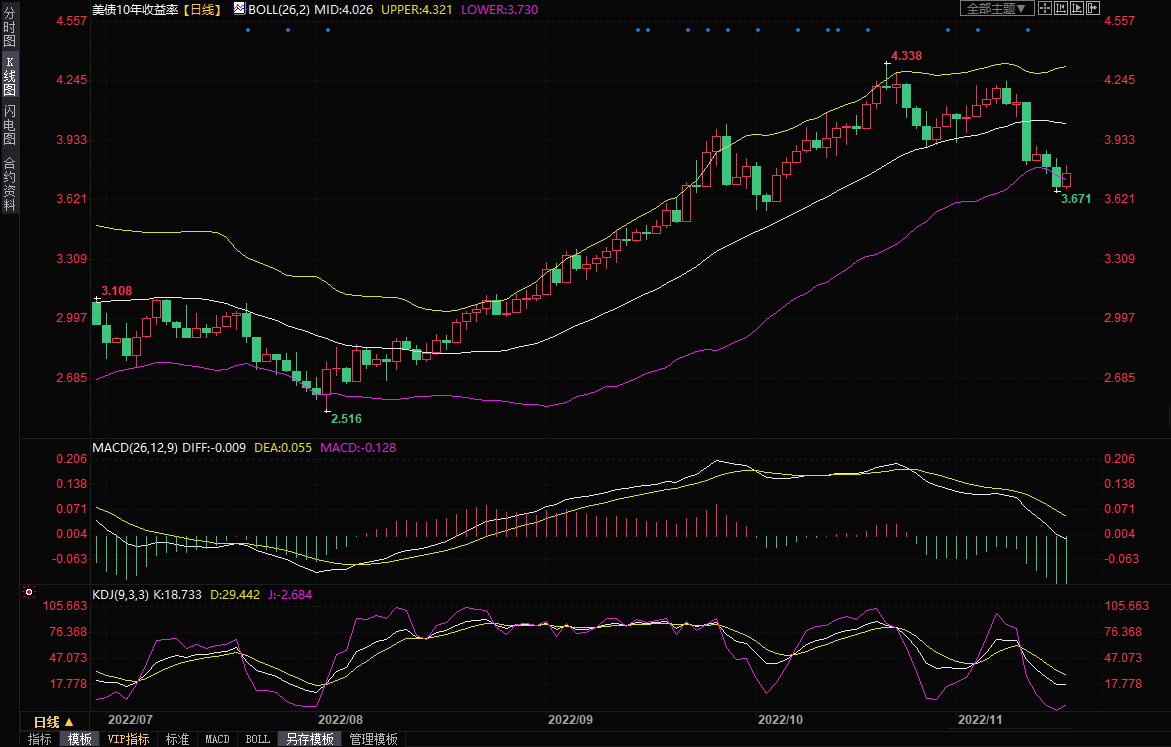 10年期国债收益率周四上涨2%,收盘报3.771%,周三跌至3.671%,为10月5日以来最低。两年期国债收益率升至4.454%,并保持在上周四CPI数据公布后触及的两周低点4.290%之上。