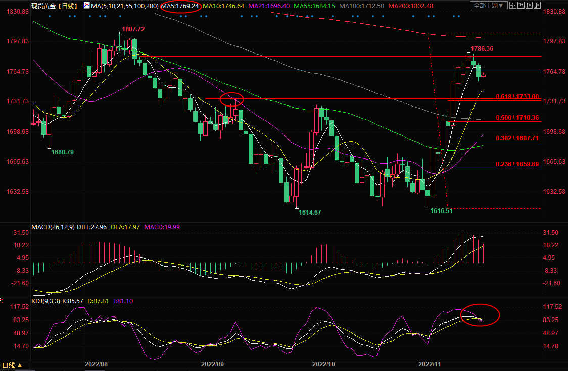 美元指数和美债收益率反弹,金价一度跌至1754.36美元/盎司附近,美国上周初请失业金人数下降,市场担忧美联储的终端利率会高于市场预期且加息周期会延长,这给空头提供反扑机会。