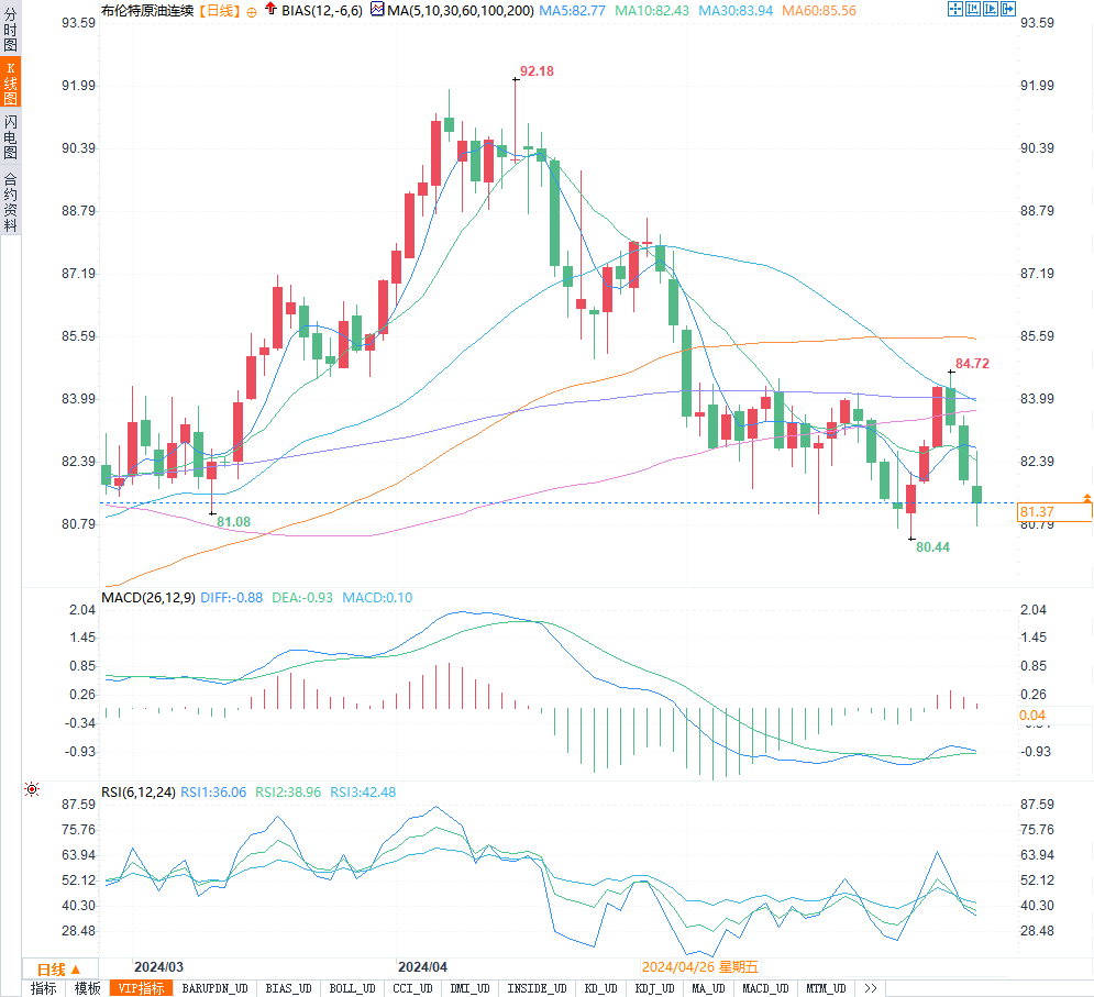 布伦特原油期货下跌0.24美元/桶,跌幅0.3%,收报81.62美元/桶。本周,