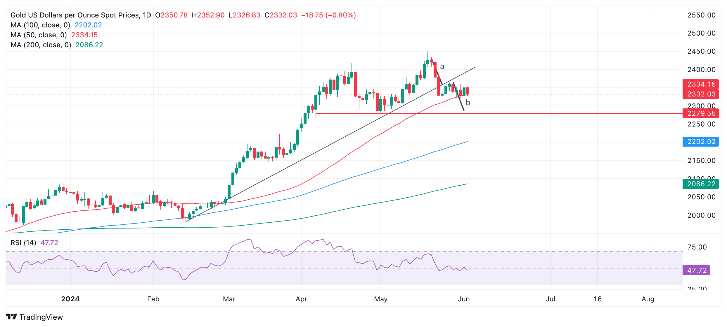 Monfort补充道,黄金的中长期趋势仍然看涨,复苏的风险仍然很高。话虽如此,目前的价格走势并不支持复苏假设。如果金价突破2362美元/盎司(5月29日高点),短期下行趋势的完整性就会受到质疑;否则,预计金价会进一步走软。