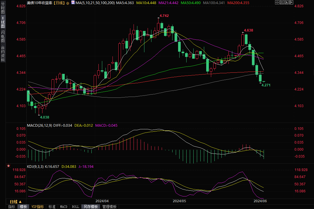 10年期国债收益率周三尾盘下跌5个基点,报4.289%,最低跌至4.287%,为4月1日以来最低。