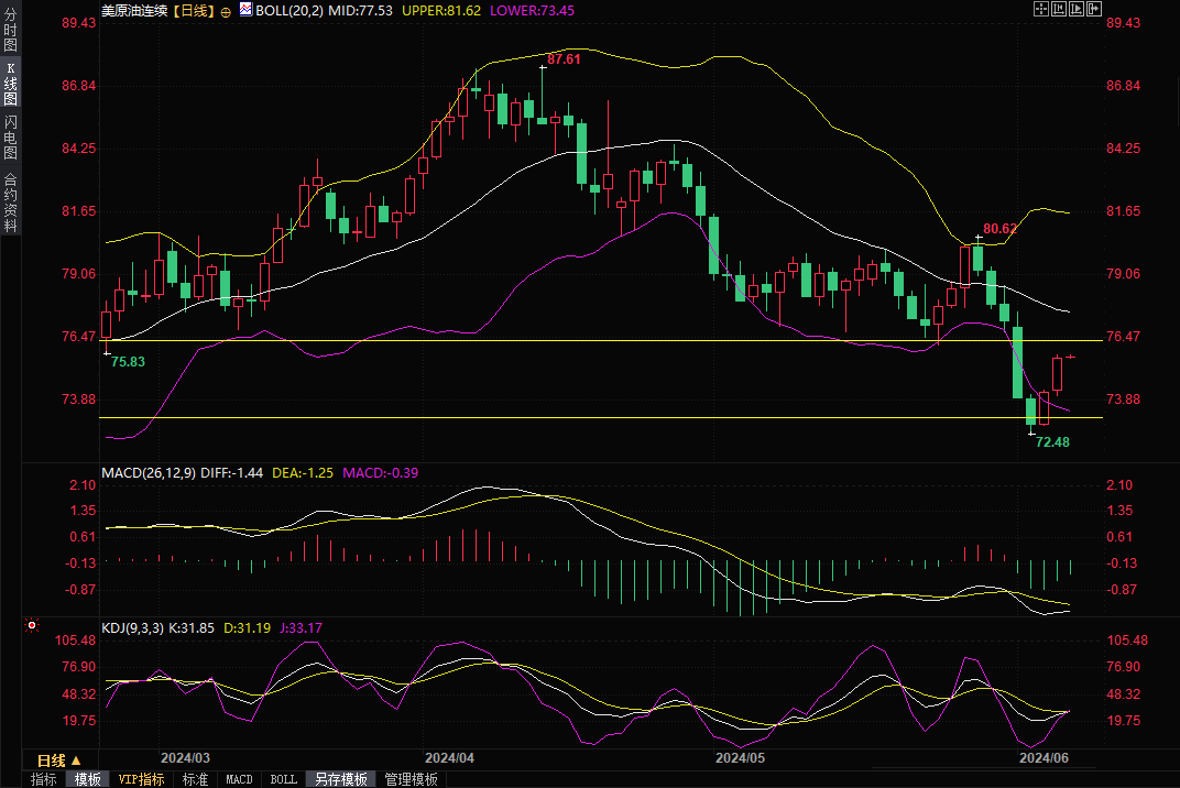 美原油窄幅震荡,目前交投于75.76美元/桶附近,守住了过去两个交易日的丈夫。油价周四收盘上涨2%,此前欧洲央行选择降息,激发了美联储效仿的希望;OPEC+部长们向投资者保证,最新的石油产出协议可能会根据市场情况而改变,沙特还批评高盛制造看跌言论,给多头提供信心。