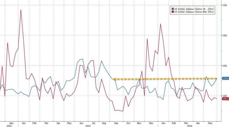 美国劳工部周四公布的数据显示,截至6月1日当周,经调整后美国初请失业金人数升至22.9万人,高于市场预期的22万人,创下4周新高。