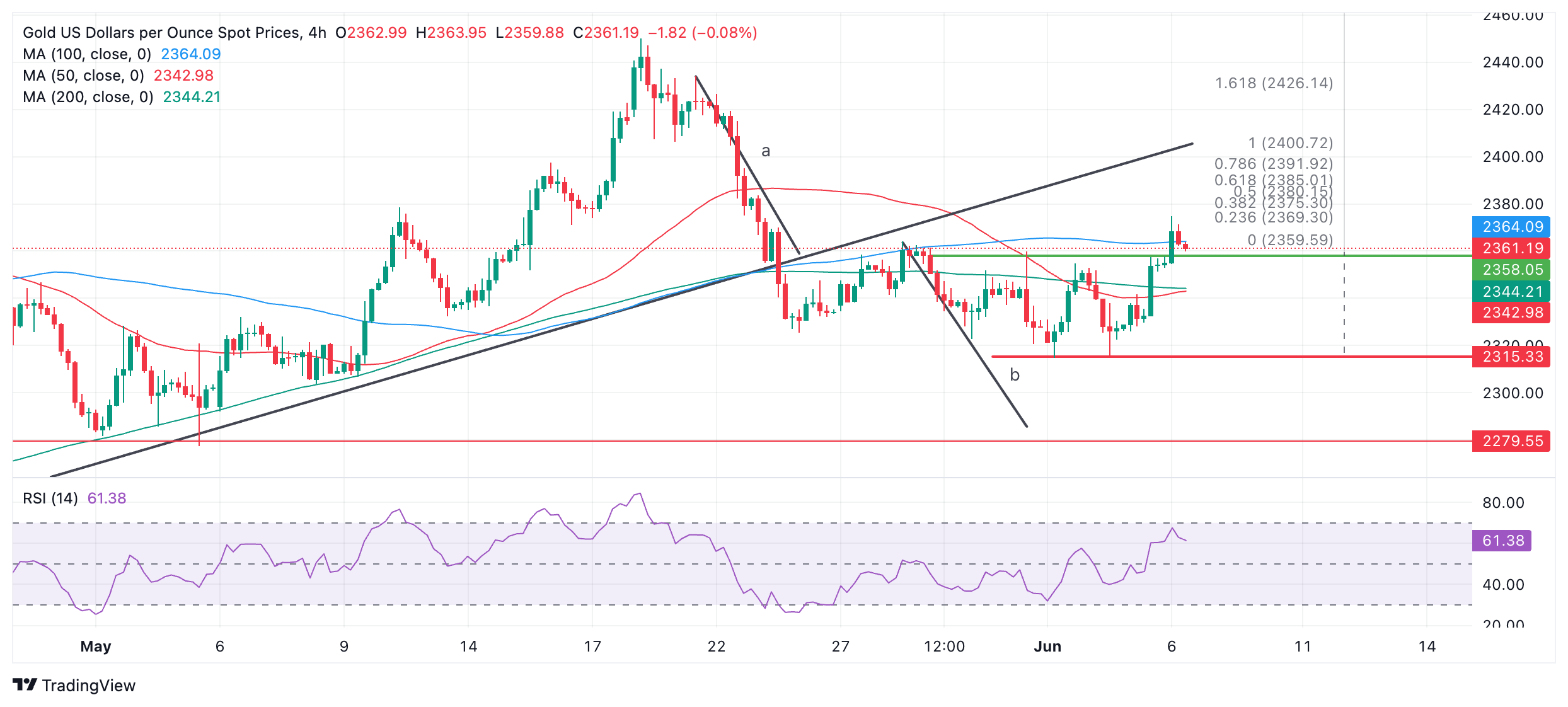 FXStreet分析师Christian Borjon Valencia指出,金价在2320-2360美元/盎司区域盘整后延续涨势,买家攻克区间顶部为金价进一步上涨打开大门。由于相对强弱指数(RSI)仍然看涨,势头仍在买方一方。