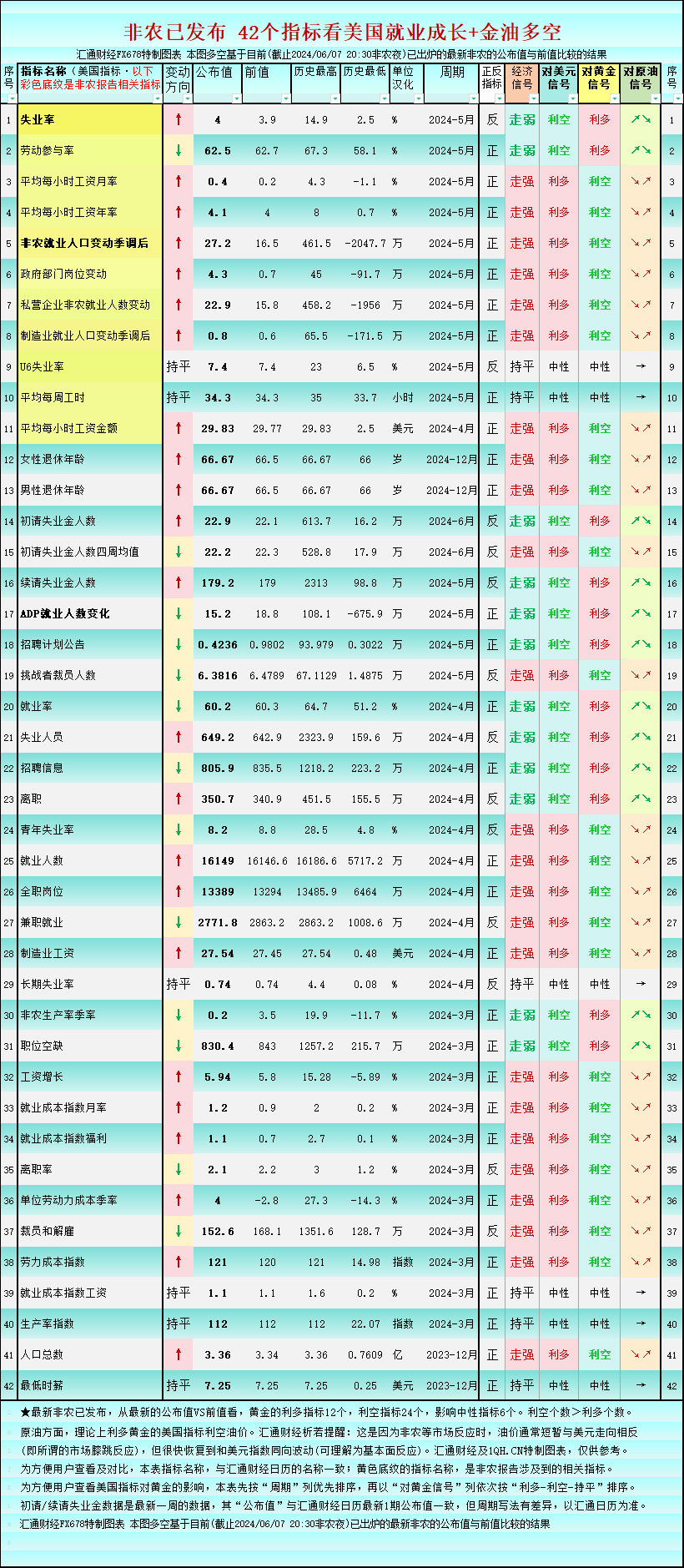 标题:一张图:非农后42个美国就业指标,利多黄金的仅12个