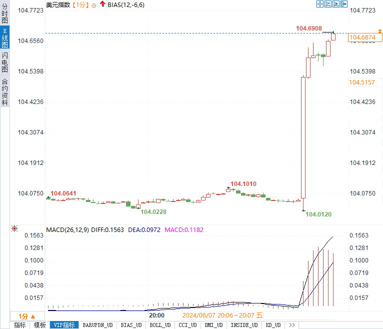 美元指数1分钟K线图 来源:易汇通)