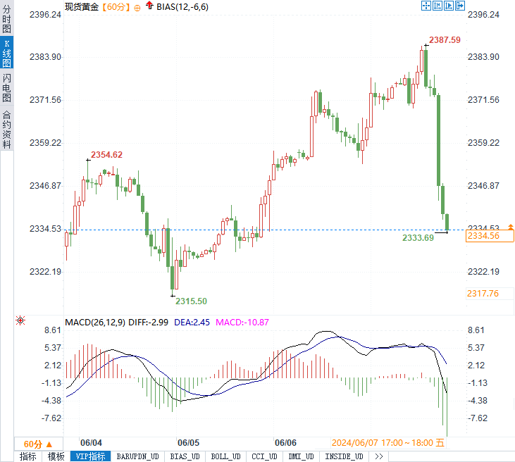 汇通财经APP讯——周五(6月7日)欧市盘中,国际黄金市场经历了剧烈的波动。尽管市场预期美联储将很快开始降息,这通常对黄金价格构成支撑,但中国央行买盘的放缓却给黄金多头带来了不小的打击。