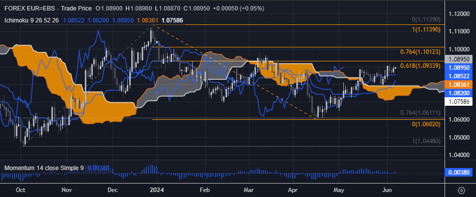 欧元在欧洲央行降息后保持稳定,尽管市场对未来宽松政策的预期并不强烈。欧洲央行降息25个基点,但同时上调了通胀预测,预计通胀率将在明年年底前保持在2%的目标之上。澳洲国民银行的资深市场策略师Gavin Friend指出,欧洲央行表现得比市场普遍认为的更为鹰派,这为欧元提供了一定支撑。
