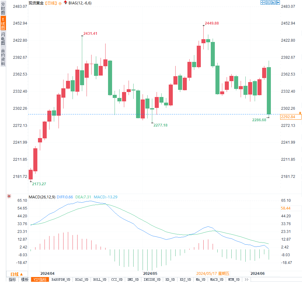 美国5月份非农就业岗位的大幅增加,远超市场预期,这一数据的强劲表现直接导致市场对美联储降息的预期降温。交易员们迅速调整了对美联储12月底降息的预期,从48个基点下调至37个基点,预计首次降息更可能发生在11月而非9月。这一转变对黄金市场产生了显著影响,因为黄金作为无息资产,在利率上升的环境下,其吸引力相对减弱。