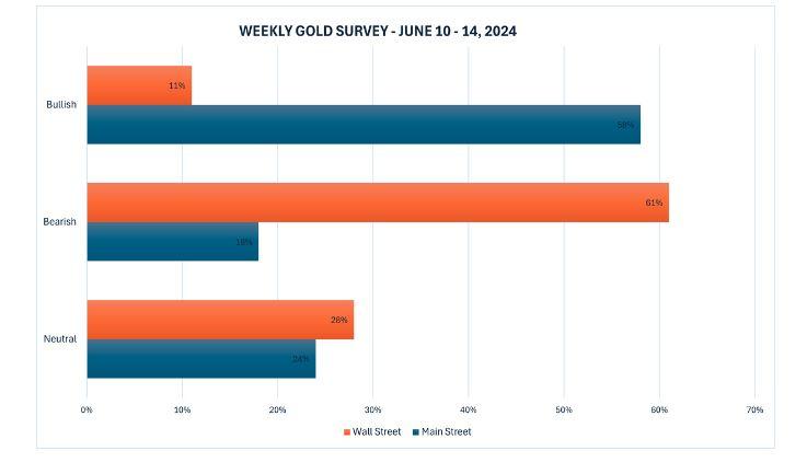 - 18位华尔街分析师参与调查,只有2位(11%)预计下周黄金价格将上涨。