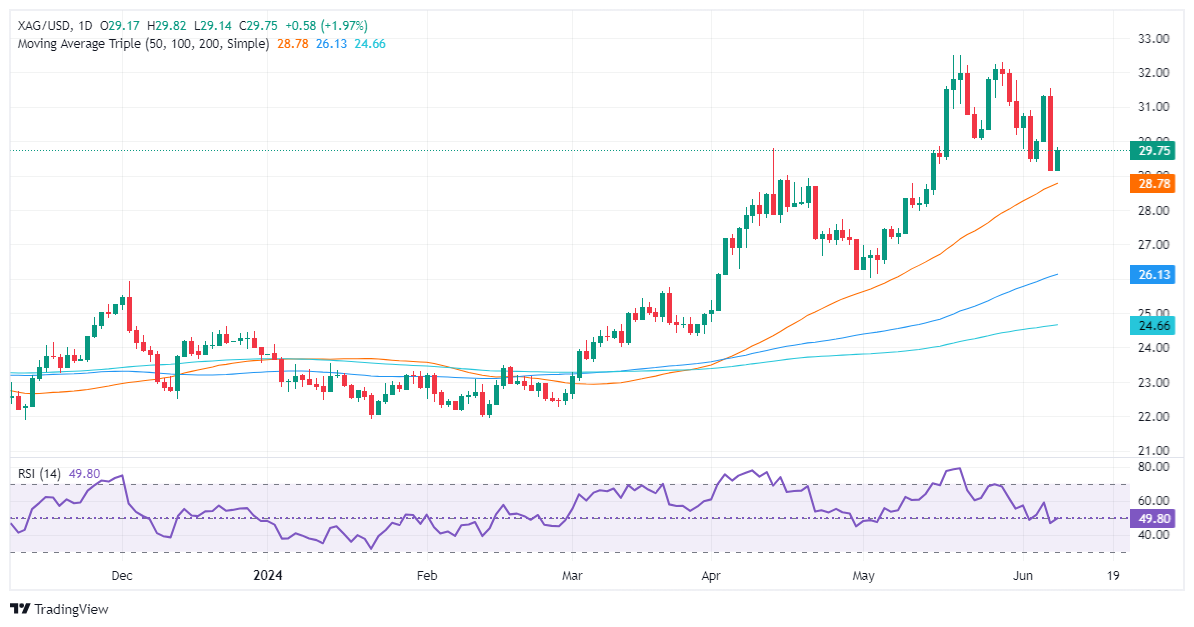 周二(6月11日)亚市早盘,现货白银短线突然大幅下挫,一度下跌逾1%至29.31美元/盎司附近。FXStreet分析师Christian Borjon Valencia最新撰文,对银价技术走势进行分析。