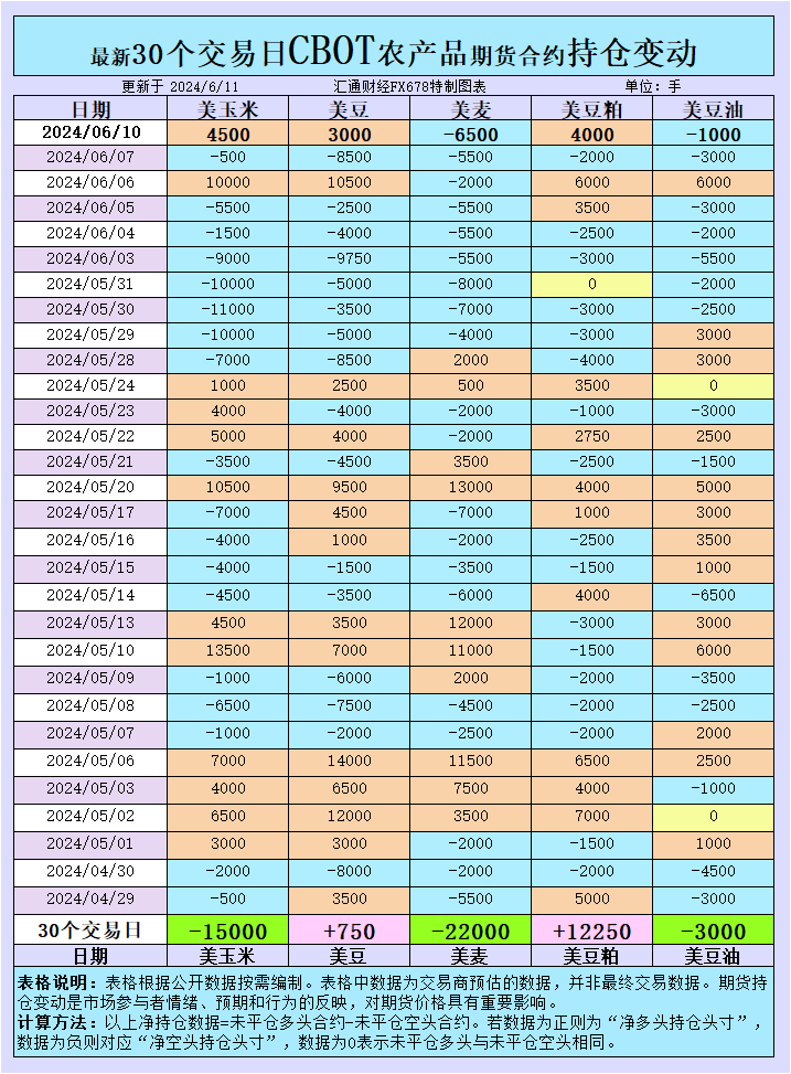 标题:CBOT持仓:CBOT持仓动态:基金调整净头寸,美麦空头增加,豆类和玉米多头上升
