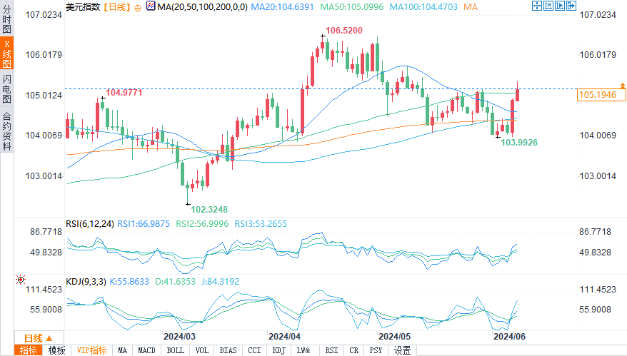 美元指数可能会飙升至105.5、105.85甚至106.3的目标水平。截至发稿,