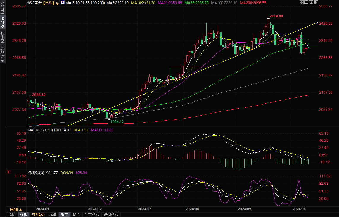 现货黄金周二盘中一度跌至2297.61美元/盎司附近,但随后收复全部跌幅,最高触及2319.82美元/盎司,收报2316.57美元/盎司。