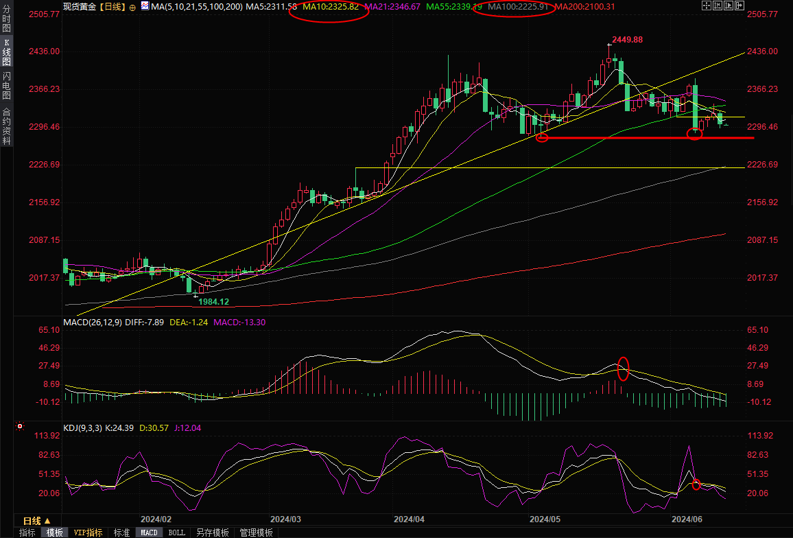 周三公布的消费者物价指数数据也显示通胀放缓,5月份CPI环比涨幅意外持平。美联储当天发表鹰派讲话后,黄金一度冲高1%,随后涨幅收窄,收盘仅上涨约0.3%。