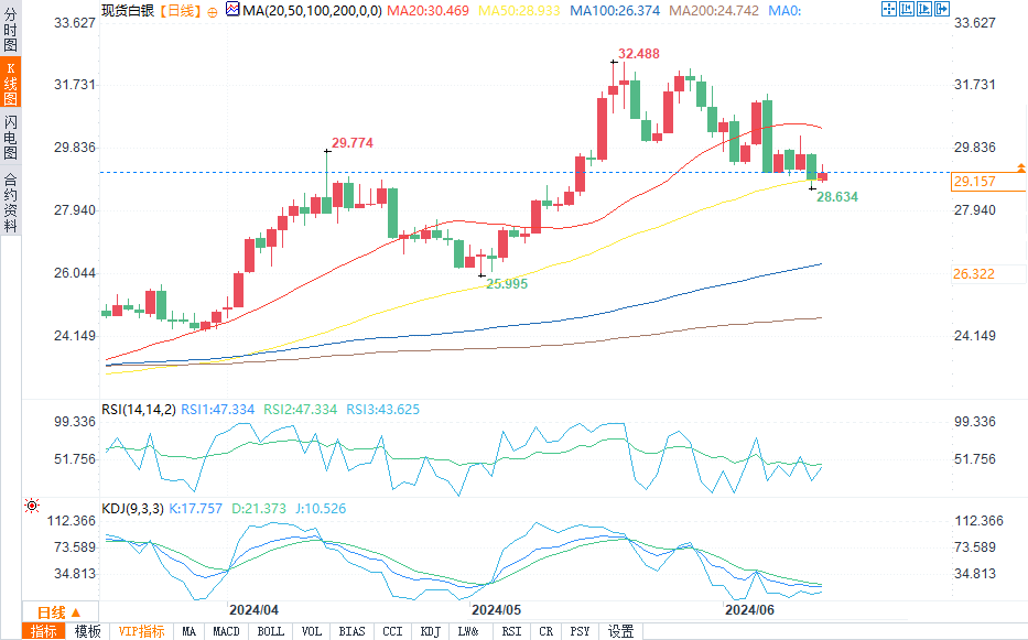 汇通财经APP讯——周五(6月14日),白银价格盘整上涨,等待市场方向变得清晰。美联储维持利率不变,但暗示可能降息,影响白银市场人气。疲弱的通胀数据支撑了白银的看涨前景,白银作为对冲衰退的工具颇具吸引力。