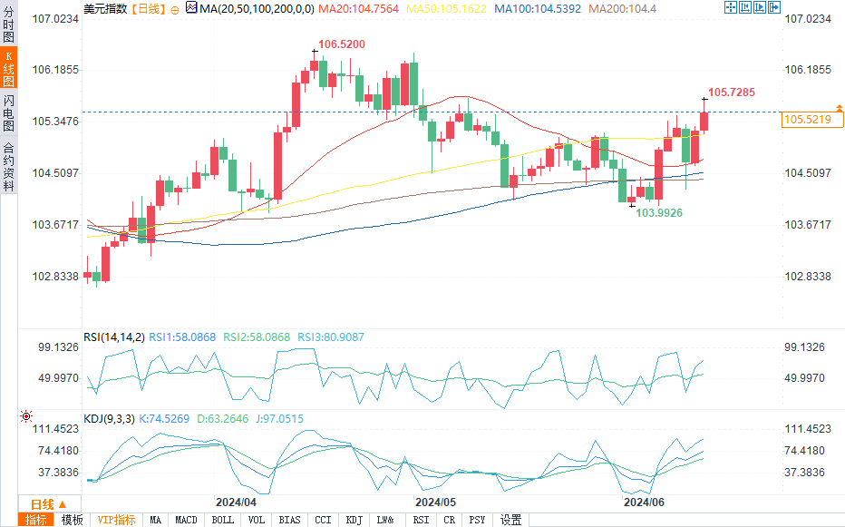 美元指数盘中报105.5545,涨幅0.31%。