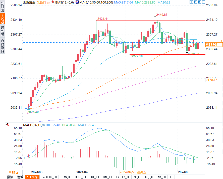 如果黄金能够突破6月7日的周期高点2387美元,那么2400美元的大关将触手可及。