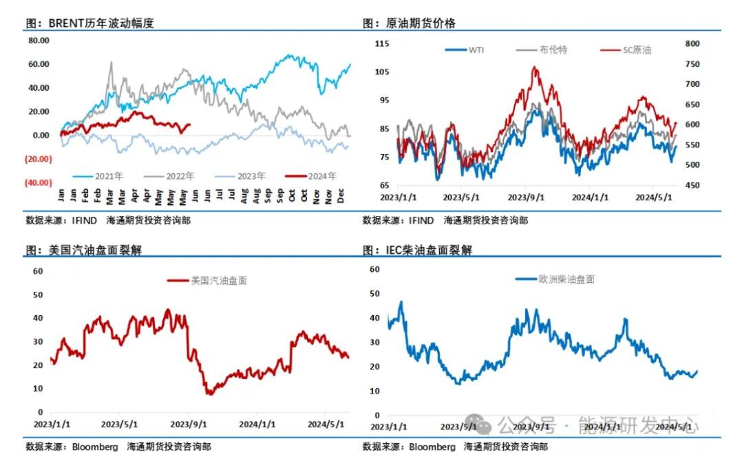 过去的一周三大机构先后公布了6月份月报,从各大机构月报展望中我们看到了市场相对混乱的展望,尤其是对需求端的判断,原油市场正处在一个变化的阶段;另外上周还是重要的宏观窗口,在前期加拿大、欧洲央行先后降息之后,围绕美联储议息会议及系列经济数据的公布给整个金融市场带来明显的扰动。油价在这个过程中也明显受到了影响。不过最终能够决定油价走向的还是目前市场抱有预期的三季度原油市场供需局面改善,这一点能否得到确认对投资者信心来讲非常关键,目前来看原油市场月差结构稳中回暖和成品油裂解差尤其是柴油裂解差走强对市场来说是个积极因素,后续仍需进一步跟踪观察原油市场供需层面能否进一步改善,这也是接下来一段时间对油价影响最关键的因素。