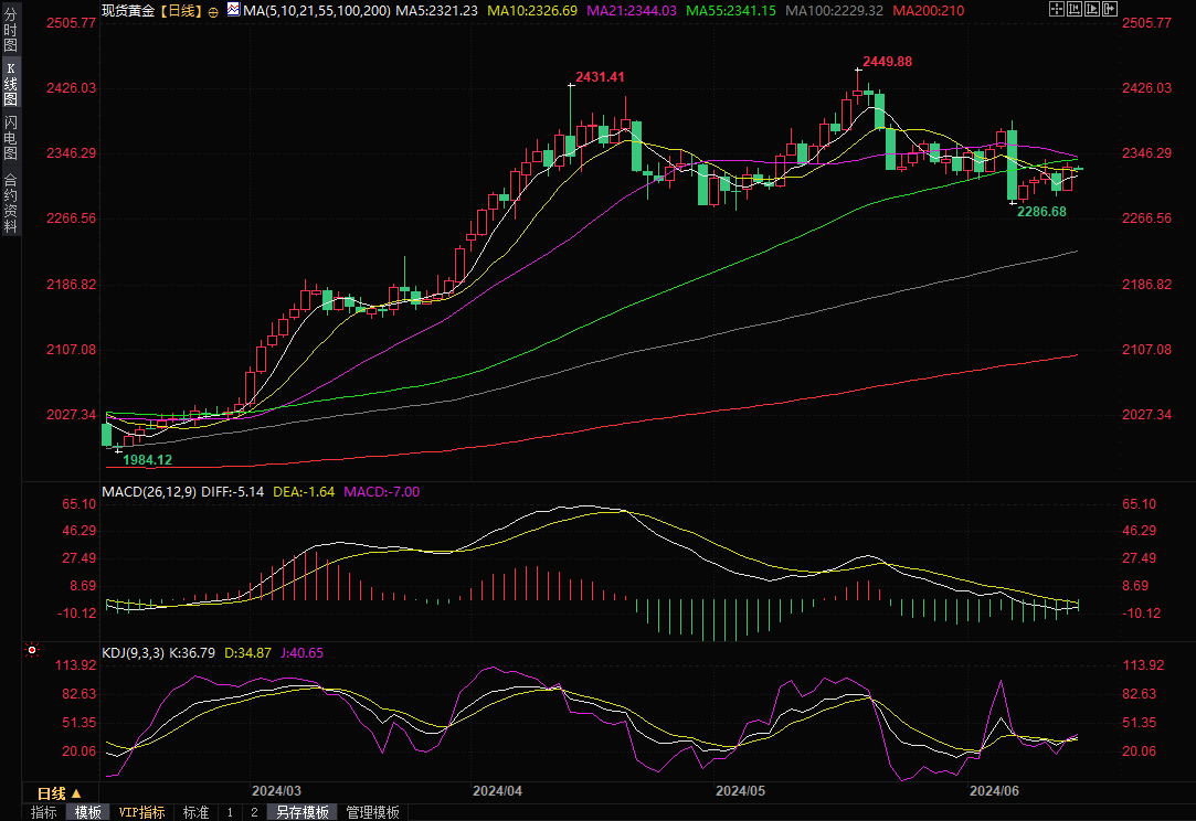 需要提醒的是,金价上周的反弹仍未收复6月7日的跌幅,而且金价仍受到55日均线 2341.16和21日均线2344.04等多重阻力位压制,在顶破21日均线前,后市金价仍有进一步回调风险,短线留意5日均线2321.22附近支撑。