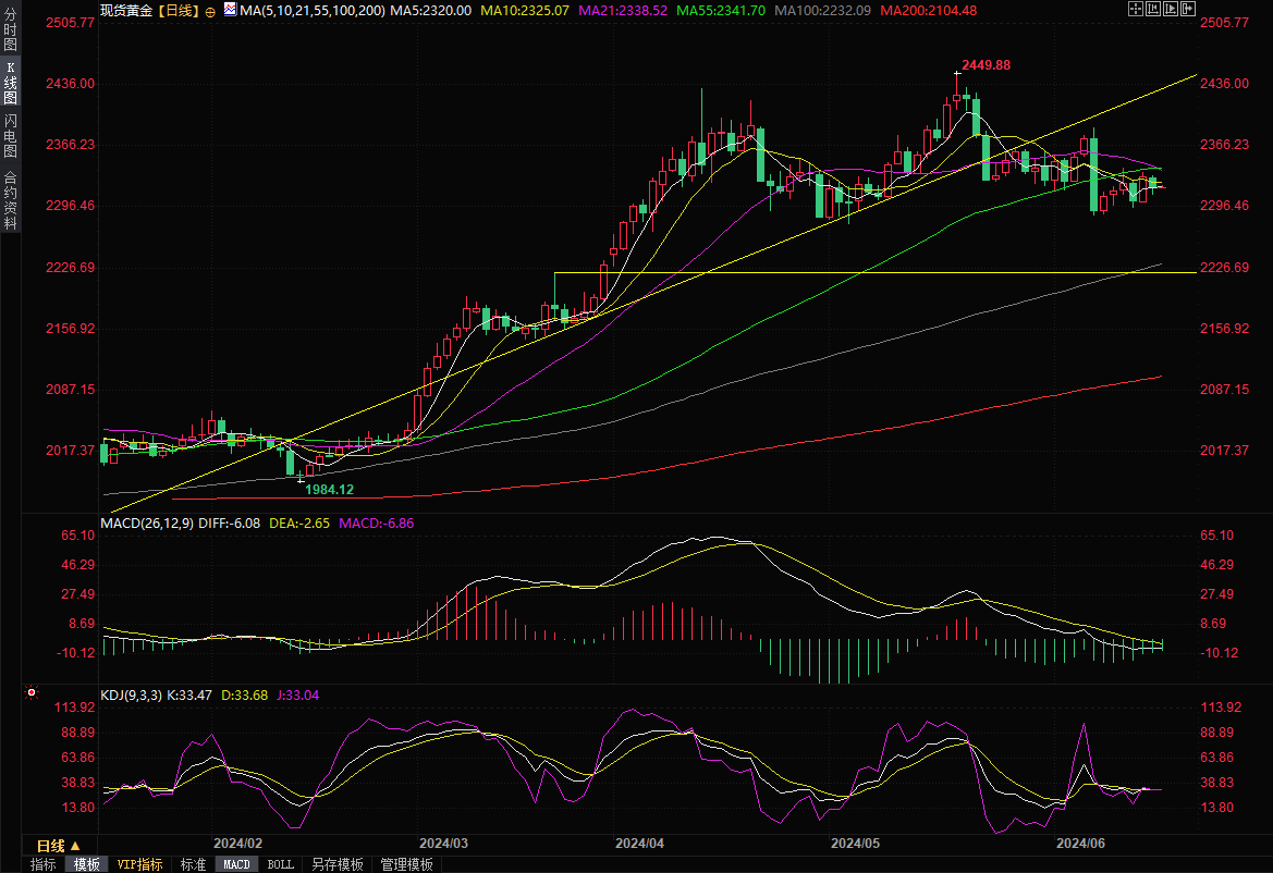 Kitco Metals高级市场分析师Jim Wyckoff表示:“目前确实缺乏新的重大基本面消息,因此黄金市场正在从外部市场寻找方向。金价可能会在2300美元至2400美元之间横盘震荡,直到下一个重大基本面催化剂出现,而这可能要等到7月的某个时候。”