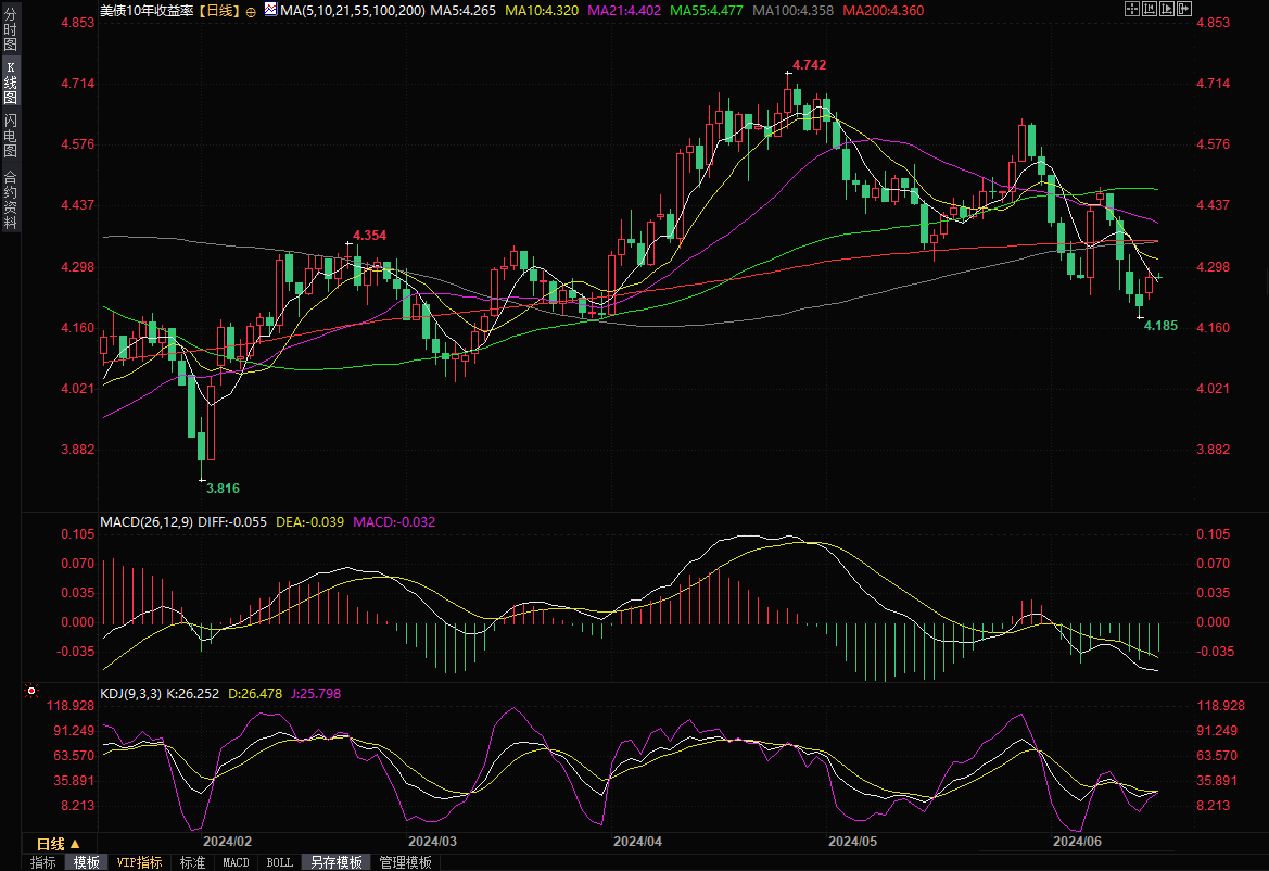 10年期国债收益率周一6.2个基点,至4.275%,上周五创下年内最大单日跌幅,因之前公布的经济数据弱于预期。
