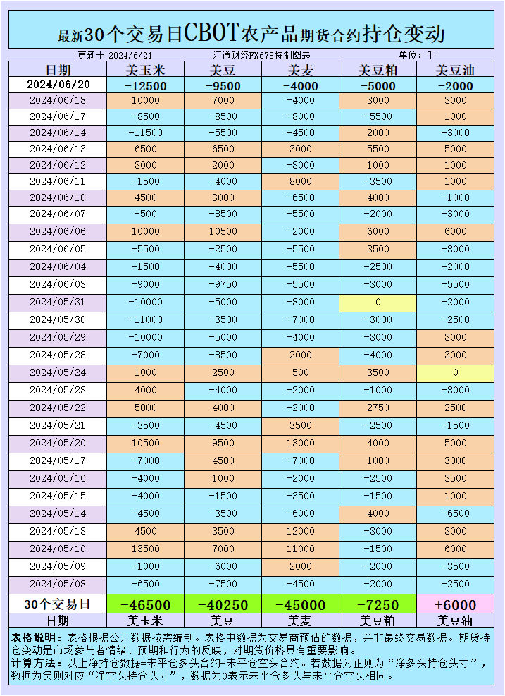 综上所述,CBOT持仓变动反映了市场情绪和基金策略的复杂性。虽然短期内市场可能受到天气和供应改善的影响,但长期趋势仍需关注全球需求动态和国际贸易政策的变化。