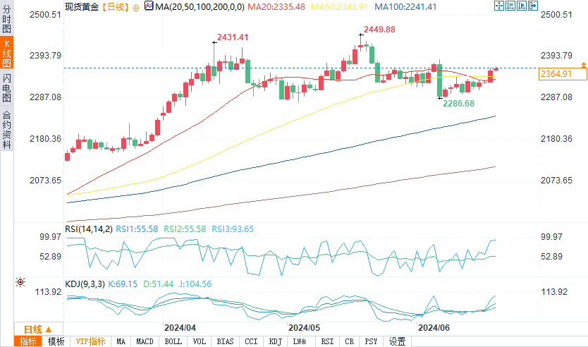 鉴于目前的经济数据和趋势,黄金价格短期内可能会保持上涨势头。进一步降息和美国国债收益率下降的可能性支持了黄金的看涨前景。尽管美元走强可能会带来一些不利因素,但整体经济环境表明,黄金将继续走强。交易员将密切关注即将发布的6月制造业和服务业采购经理人指数(PMI),以及成屋销售数据,以寻找市场进一步走向。