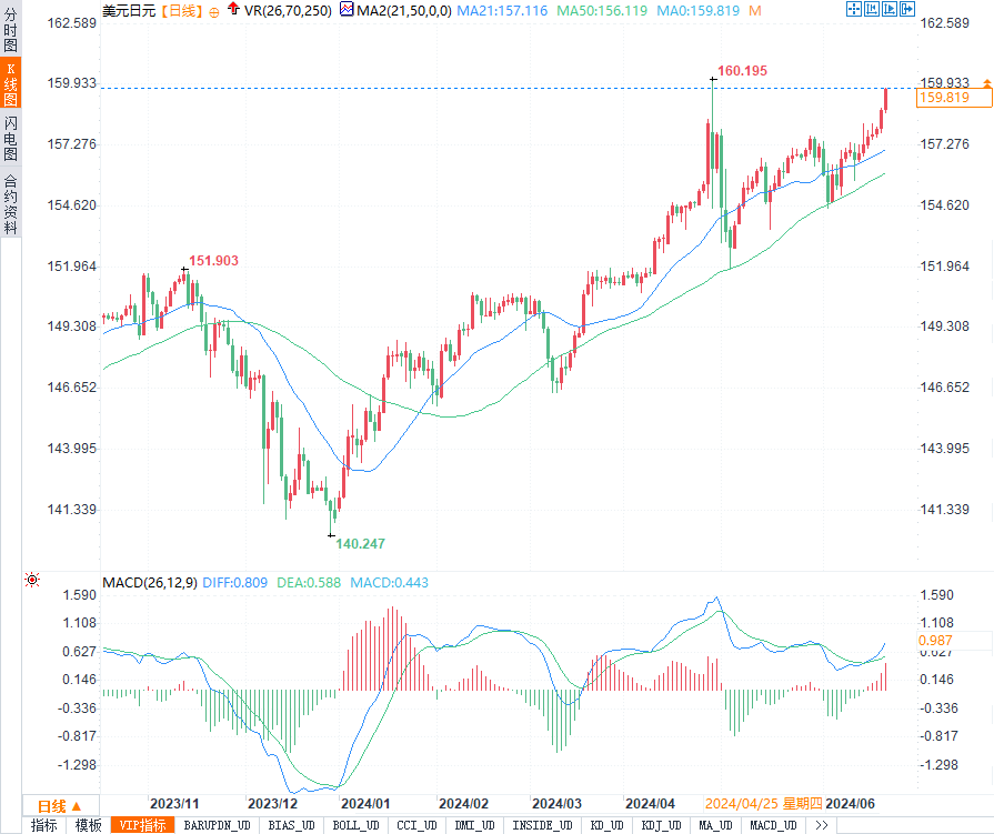 美元/日元接近160.00的心理关口时,市场对日本政府干预的警觉性增加。同时,158.427-157.80区域作为潜在支撑,若市场对干预反应敏感,可能导致美元/日元回落。此外,21日简单移动平均线156.787作为周期高点,为美元/日元提供了另一参考水平。