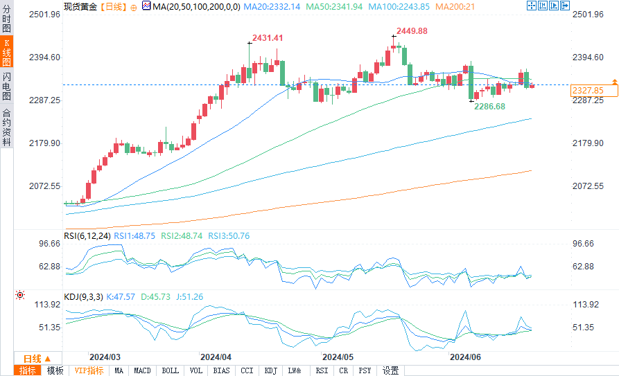 现货黄金盘中走高,报2327.89美元/盎司,涨幅0.29%。