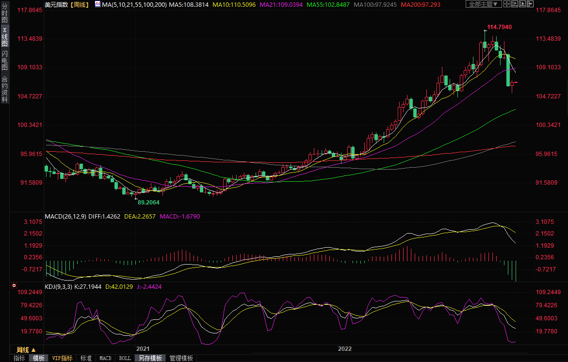 美元指数上周探底回升,早些时候一度跌创逾三个月新低至105.28,上周五收报107.00,周线收涨0.54%,为近八周最佳表现。