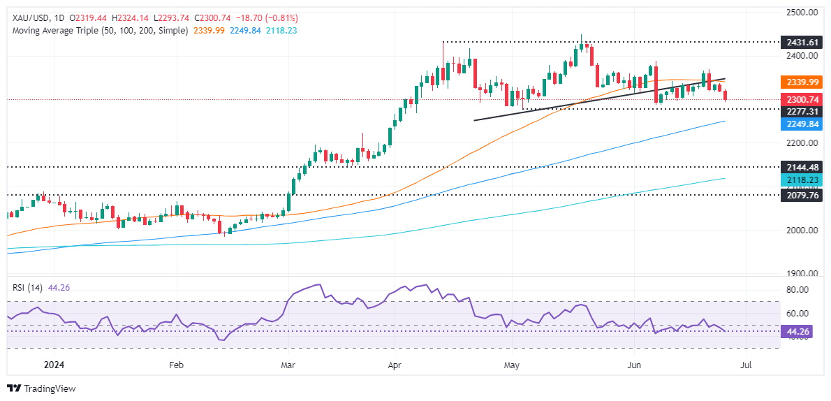 金价跌逾20美元失守2300关口,分析师:头肩形态暗示料进一步下跌