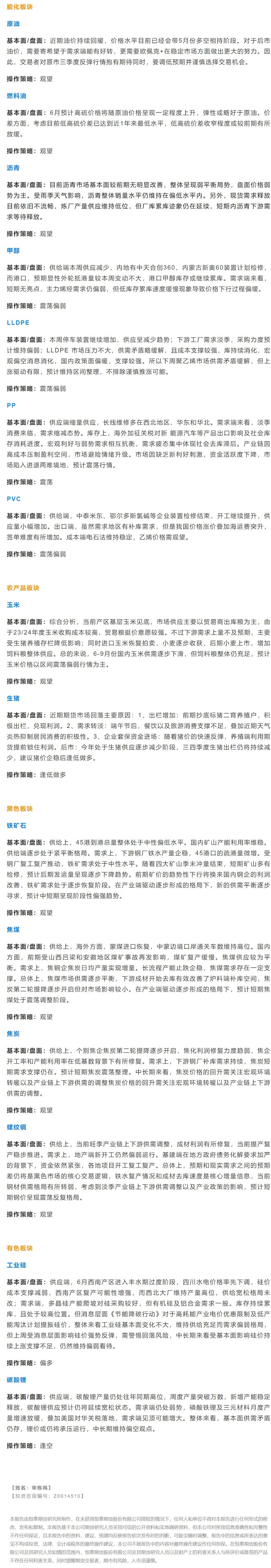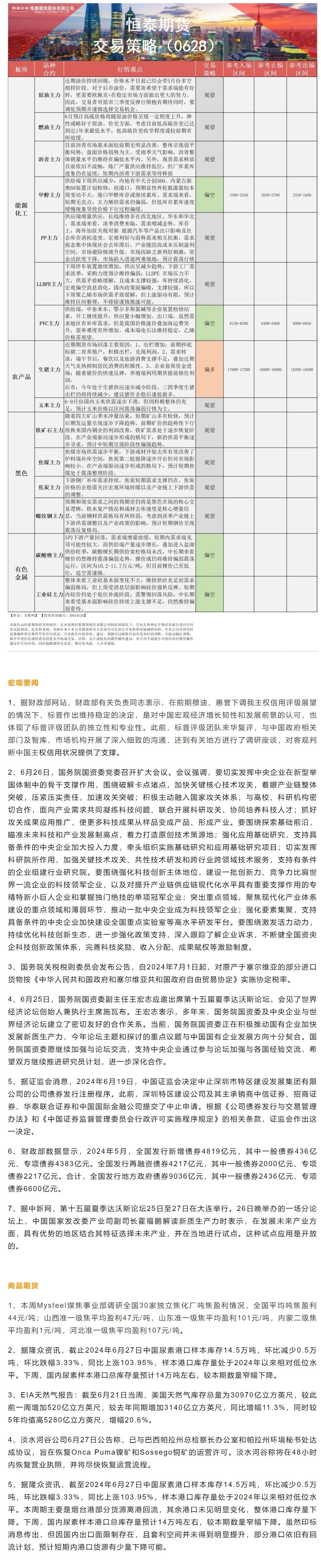 标题:恒泰期货6月28日早间交易策略