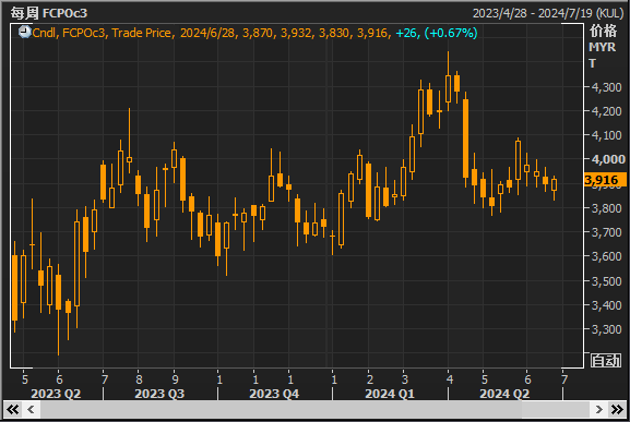 印度的季风情况也对棕榈油市场产生了影响。据两位印度气象官员透露,尽管季风在月初有所停滞,但现在已经覆盖了印度超过四分之三的地区,预计在播种季节将覆盖整个国家。作为全球最大的食用油进口国,印度的降雨量增加可能会提高大豆和花生等夏季油籽的产量,这可能会限制新销售年度从11月1日开始的棕榈油进口需求。
