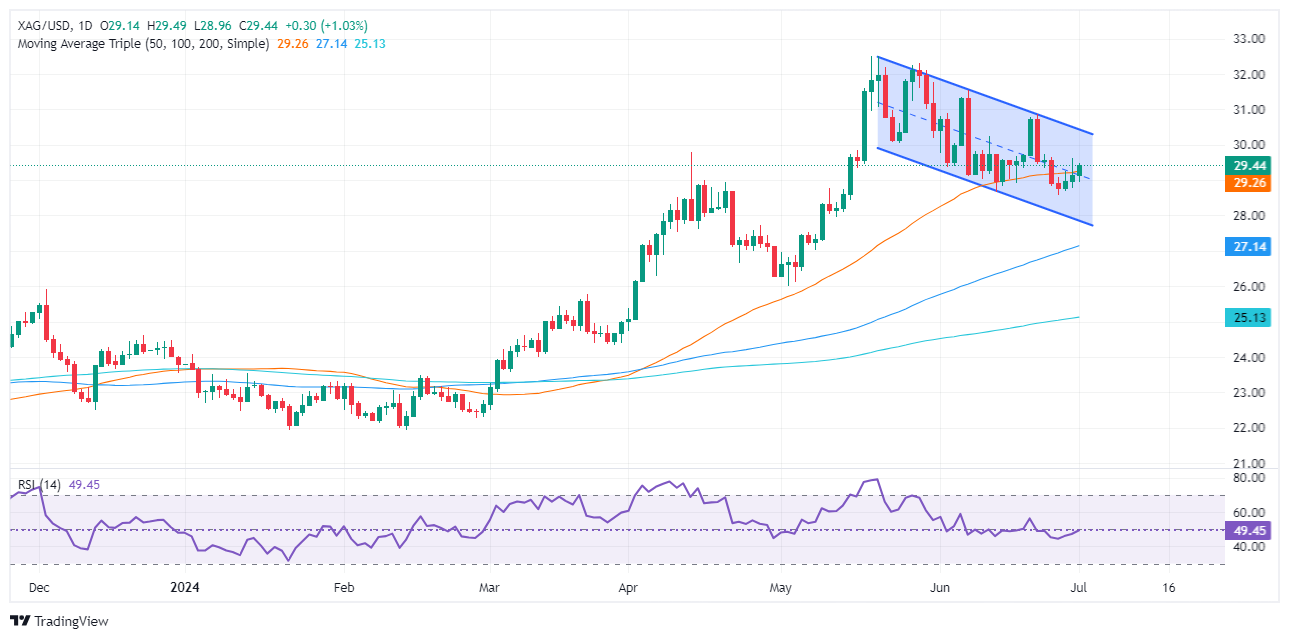 周一(7月1日),现货白银价格大涨逾1%。FXStreet分析师Christian Borjon Valencia最新撰文,对银价技术走势进行分析。