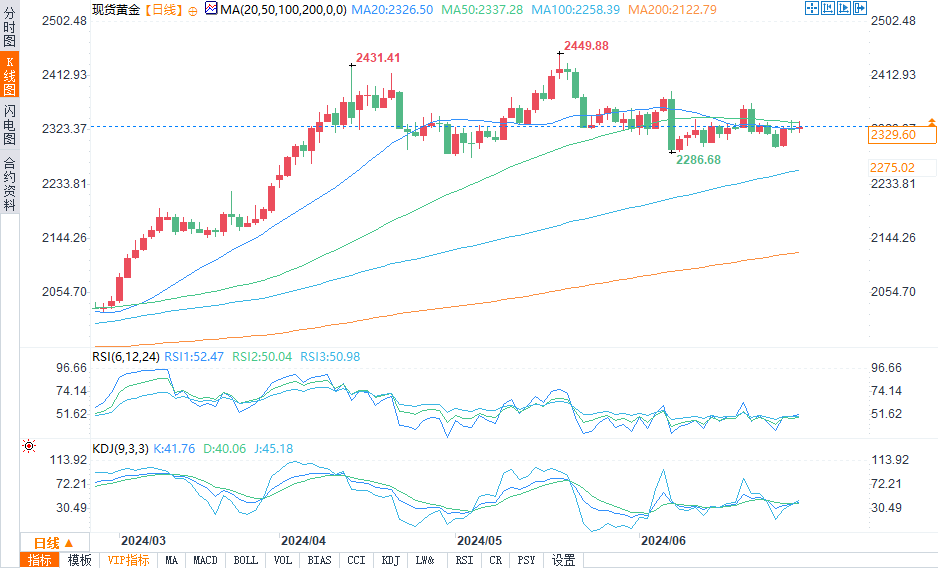 现货黄金在一度跌破2320关口后回升,盘中报2327.70美元/盎司,涨幅0.06%。