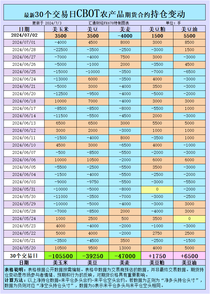 放眼国际,巴西作为全球农业的重要参与者,其二季玉米和大豆的收成预期,以及亚洲进口国可能因价格和政治因素而增加的大豆进口量,都为全球农产品市场增添了不确定性。这些因素共同塑造了CBOT持仓变动背后的市场情绪,预示着农产品价格未来可能的走向。