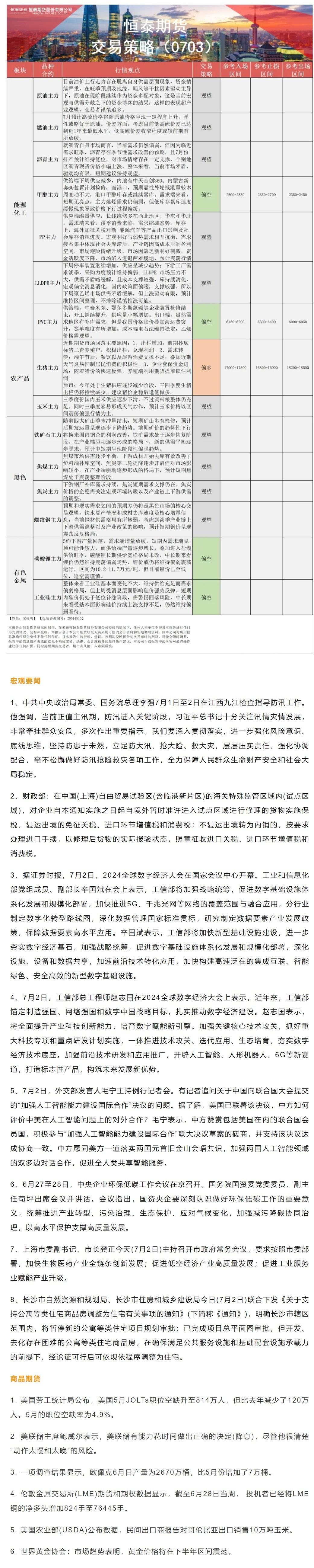 标题:【恒泰早报】7月3日恒泰期货交易策略
