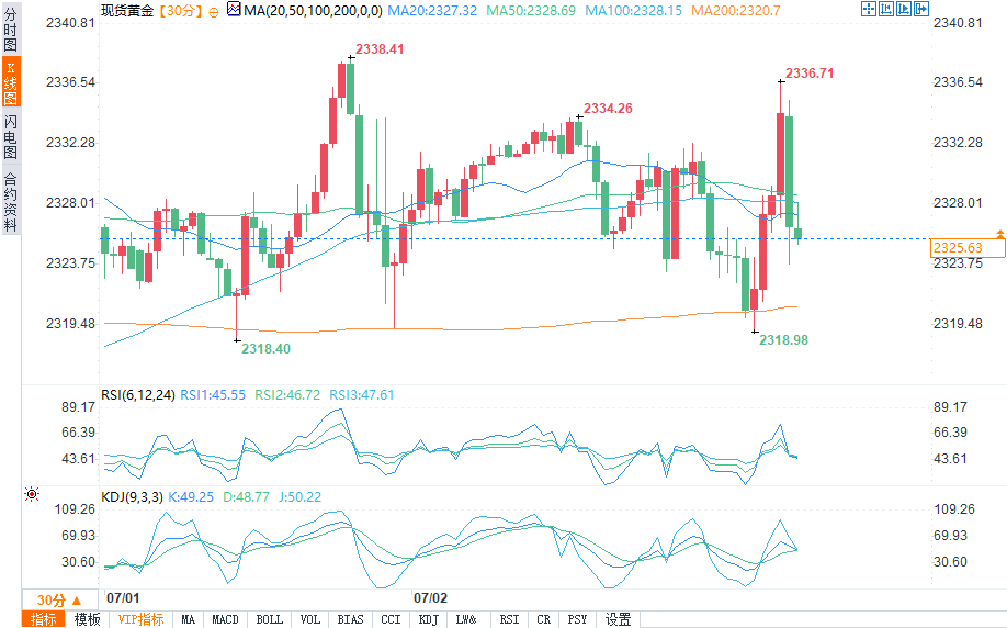 现货黄金报2323.82美元/盎司,跌幅0.33%。