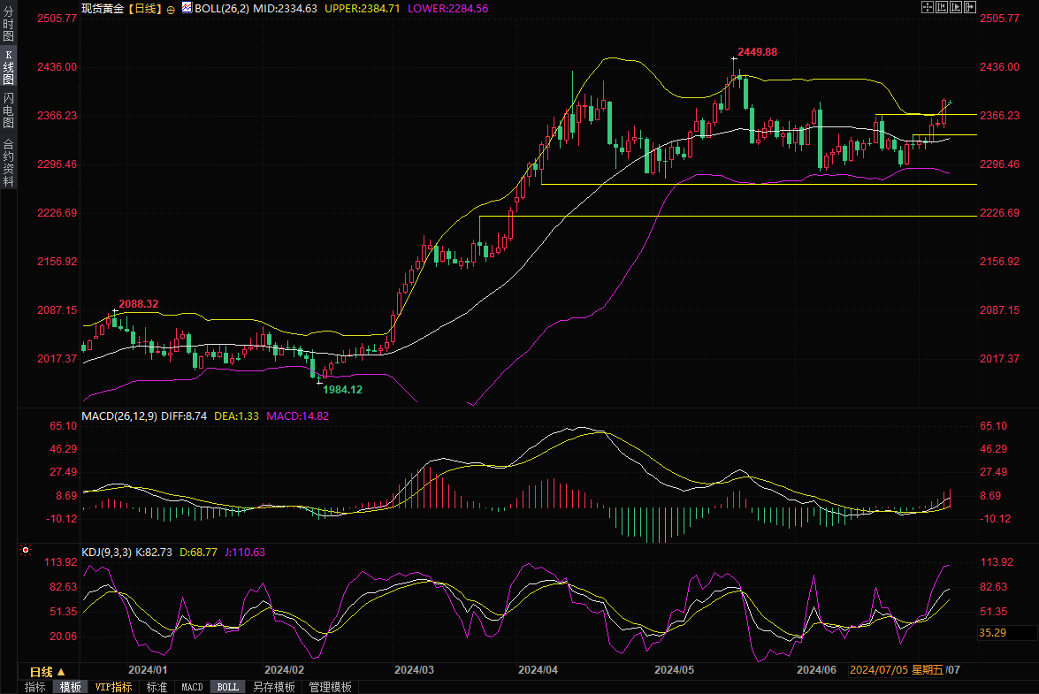 本交易日投资者需要留意法国大选的进一步发酵情况。本周重点关注美联储主席鲍威尔的国会证词和美国6月CPI数据,留意地缘局势相关消息。相对而言,目前基本面和技术面偏向支撑金价顶破2400关口,甚至有望上探历史高点2449.88附近阻力。