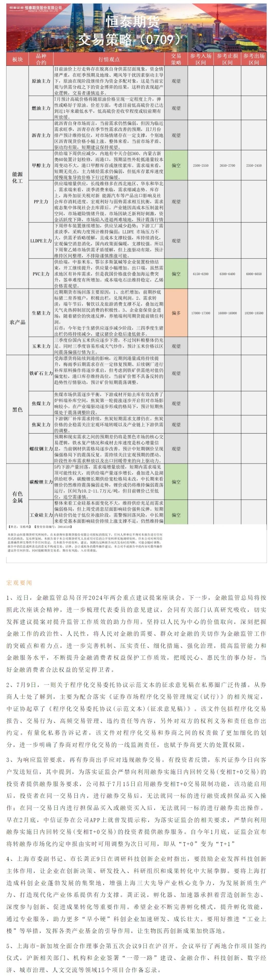 标题:【恒泰早报】7月10日恒泰期货交易策略