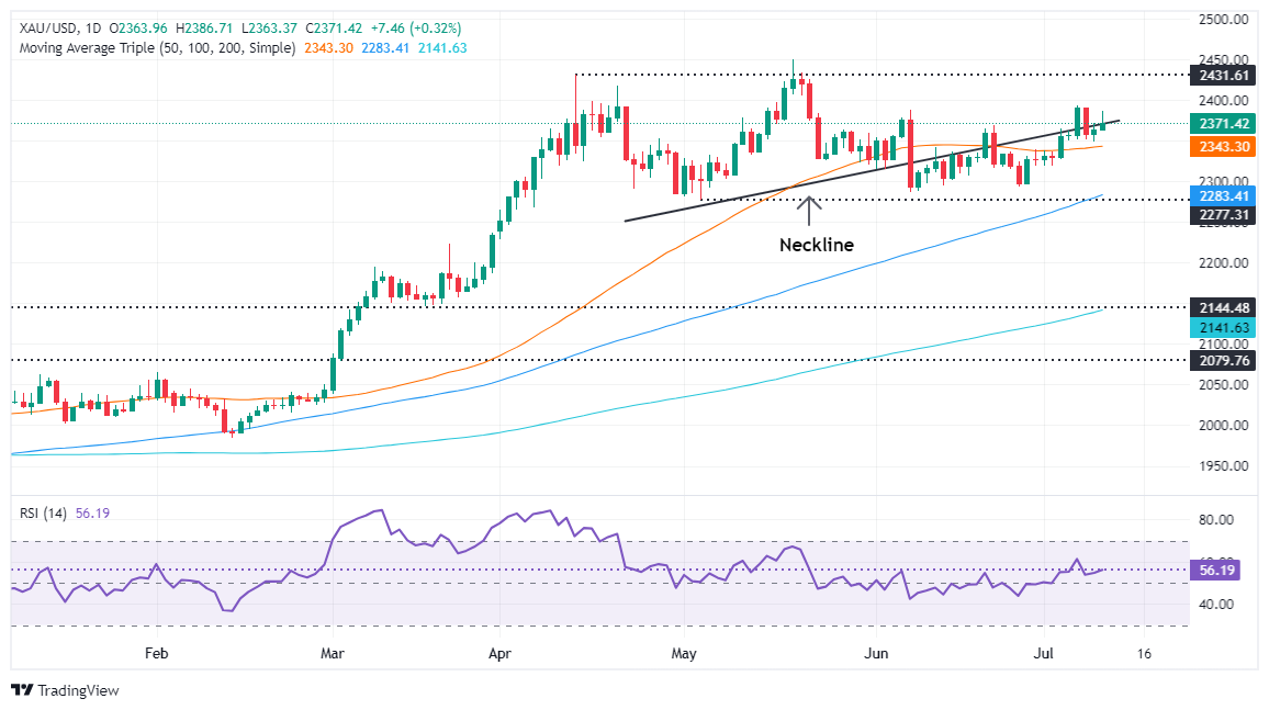现货黄金周三最终收盘上涨0.32%,报2371.04美元/盎司。