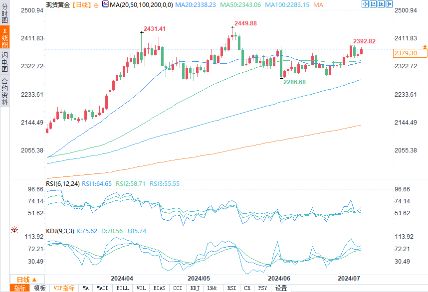 现货黄金报2379.45美元/盎司,涨幅0.67%。