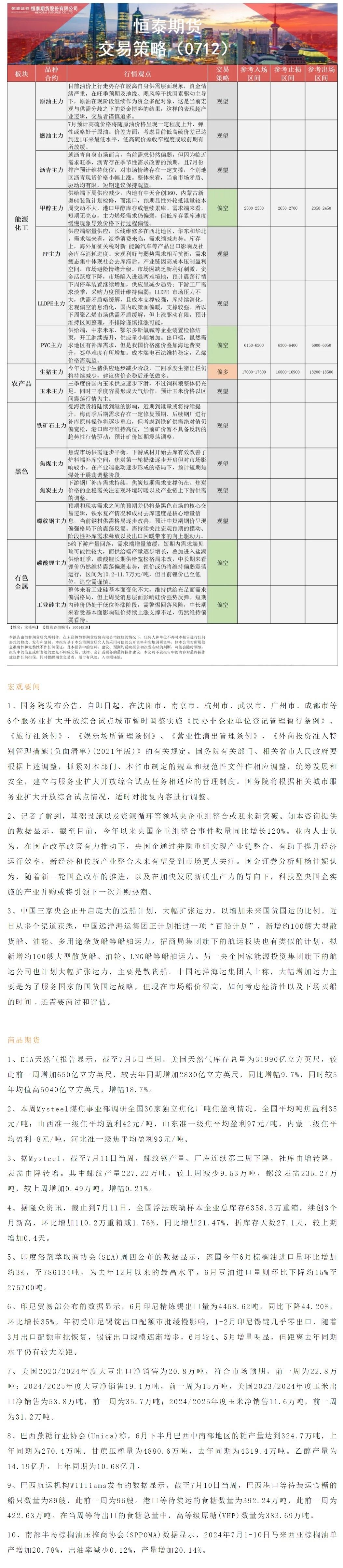 标题:【恒泰早报】7月12日恒泰期货交易策略