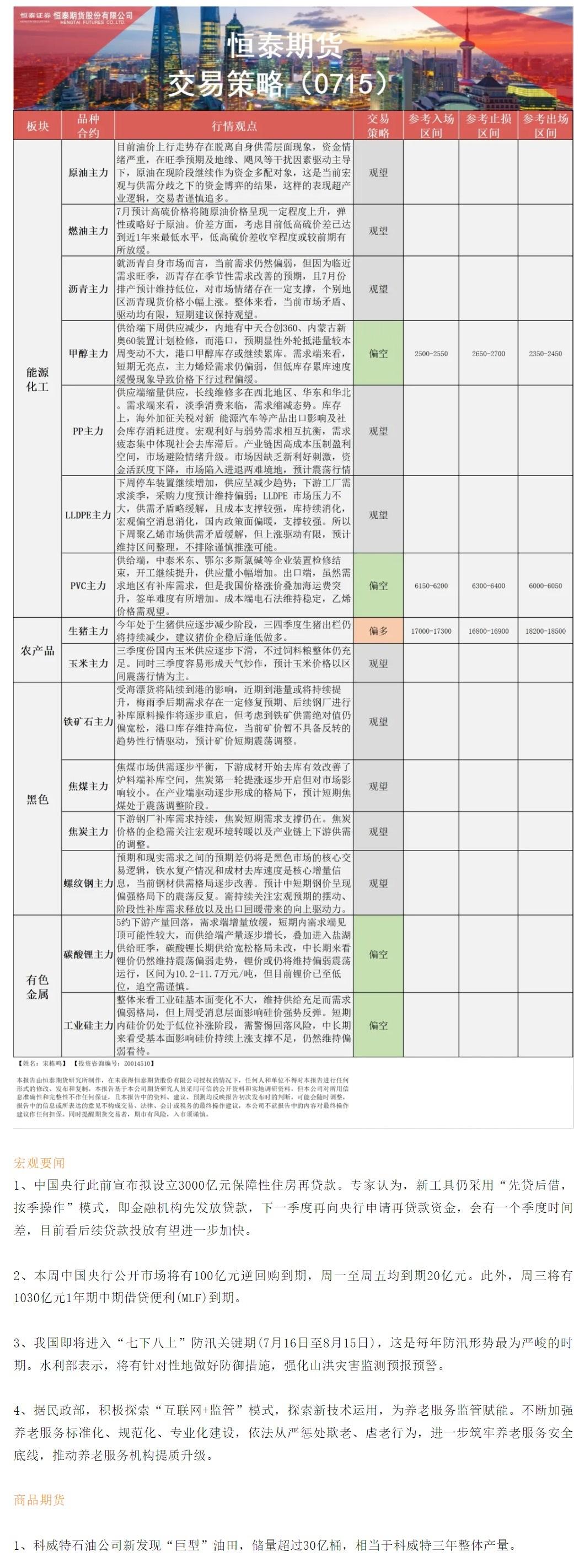 标题:【恒泰早报】7月15日恒泰期货交易策略
